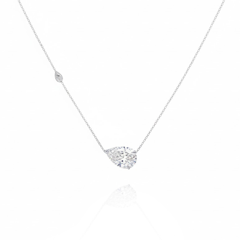 Elevate your everyday look with the Modern Pear Tilted Diamond Necklace, a piece that beautifully blends classic elegance with a contemporary edge.