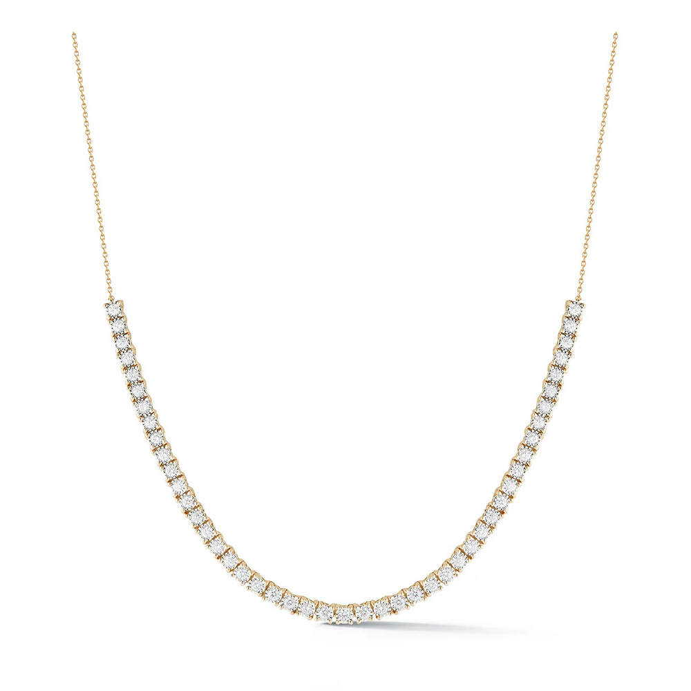 Make a statement with ourĀ Lab-Grown Round Diamond Half Tennis Necklace, featuring 5.30CT round diamonds that exude brilliance and elegance. Available in 18K White and Yellow Gold, this necklace is the perfect embodiment of timeless luxury and sophistication.