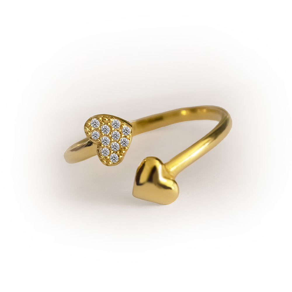 This sweet 18K yellow gold double heart ring sparkles with brilliant cut diamonds. They’re the perfect blend of sophistication and charm, sure to capture the heart of anyone who wears it.