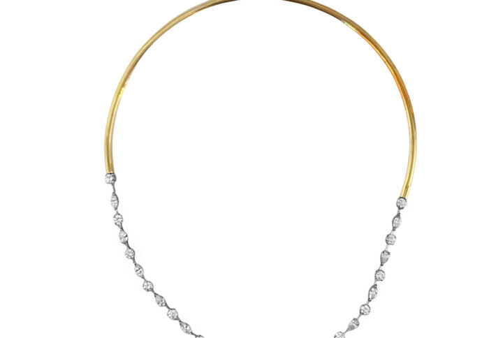 A gorgeous set of half torque handmade in 18k gold paired with half Tennis Collier handcrafted in 18k gold with Lab Grown Diamonds approx. 3.9 Carats Total Weight of 24 Marquise shape stones of size 0.15.