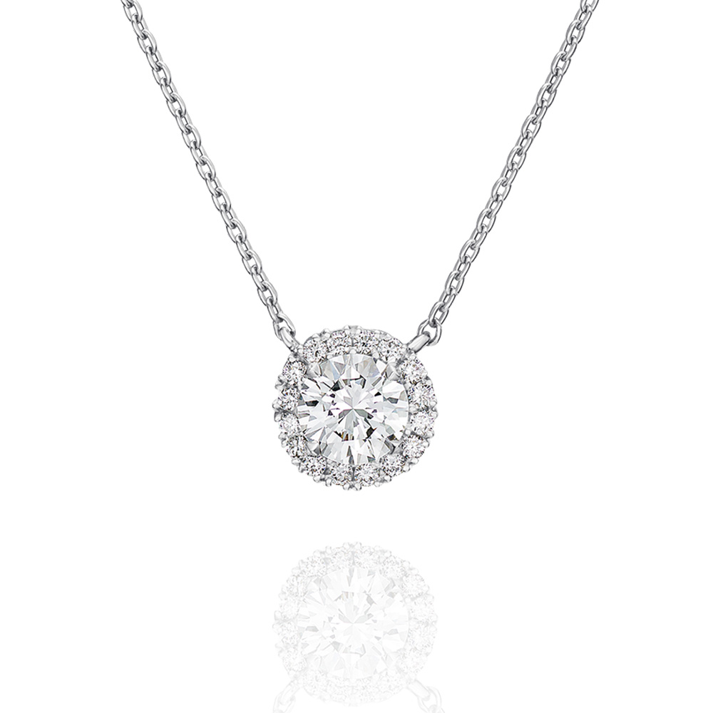 This gorgeous white gold cluster diamond pendant featuring approx. 0.25ct brilliant round Labgrown diamonds as a center stone set to create a dazzling disc encrusted with approx. 0.32ct round diamonds.