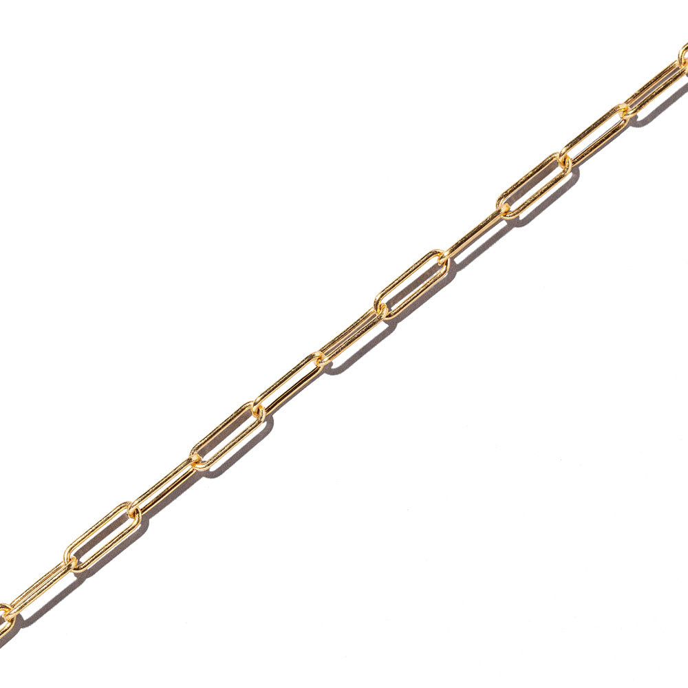 Thin paper clip links of polished 18k yellow gold interlock in this design, creating a striking look that complements any outfit.