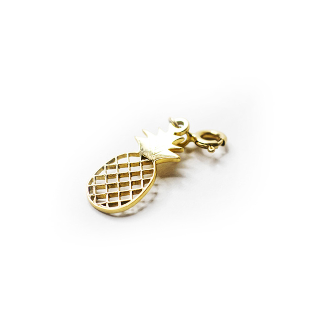 Detailed charm has a leafy top and the pineapple’s signature crisscross patterning.